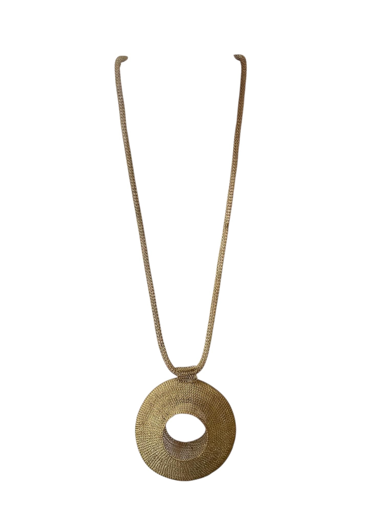 Originale la coolana in filo d acciaio dalla forma a ciambella .Colore bronzo.Lunghezza 33cm
