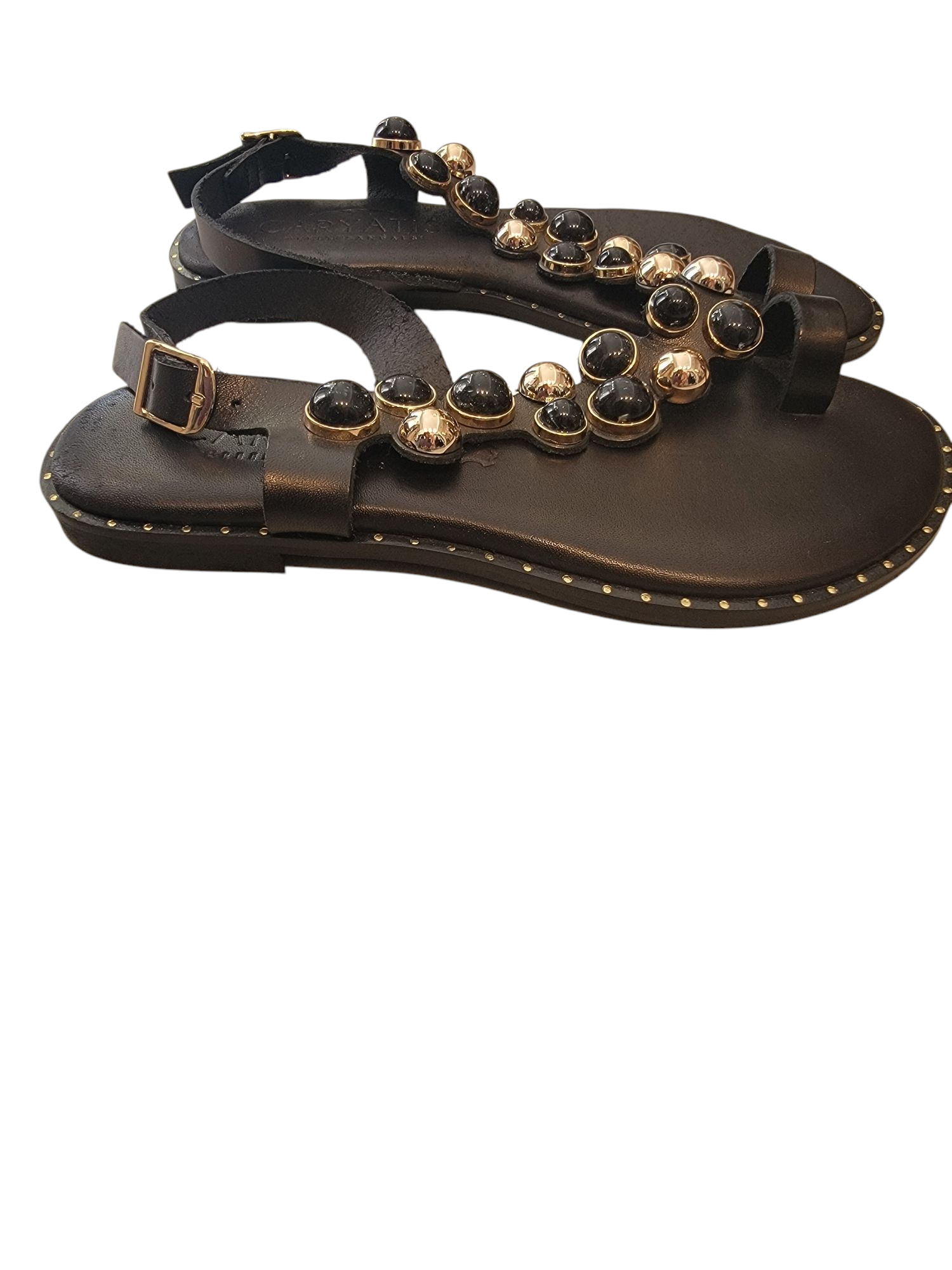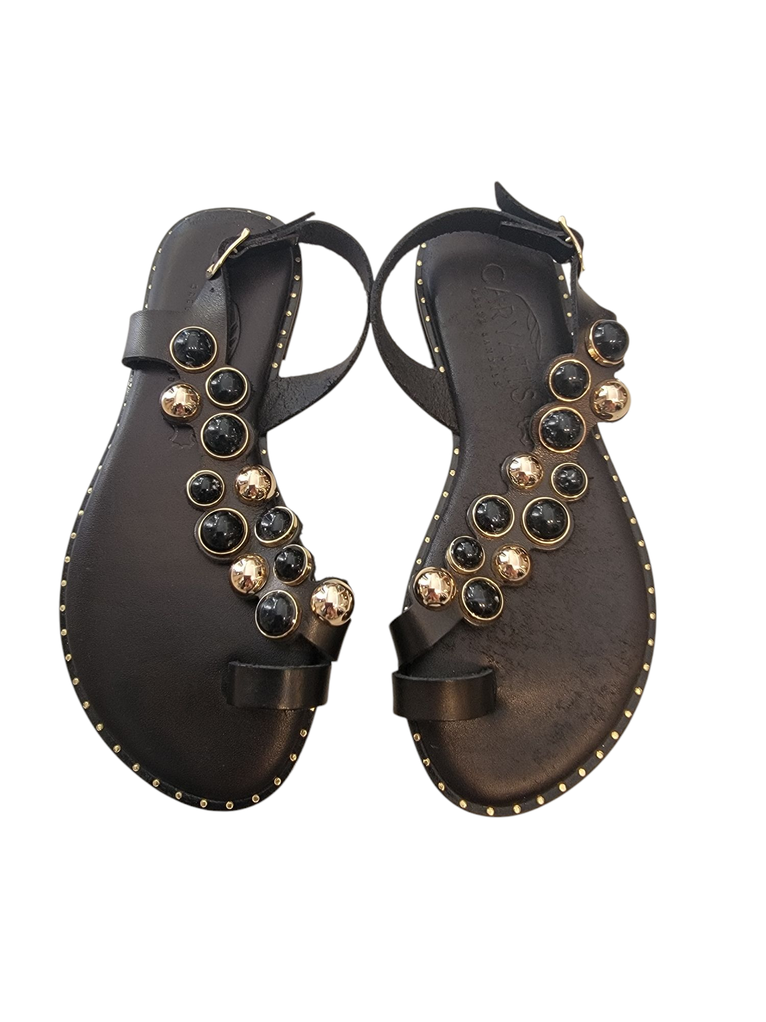 Sandalo fatto a mano made in Greece. Materiale vera pelle certificata secondo ISO certification.Gli ornamenti placcati in oro o argento sono resistenti all ossidazione e corrosione.